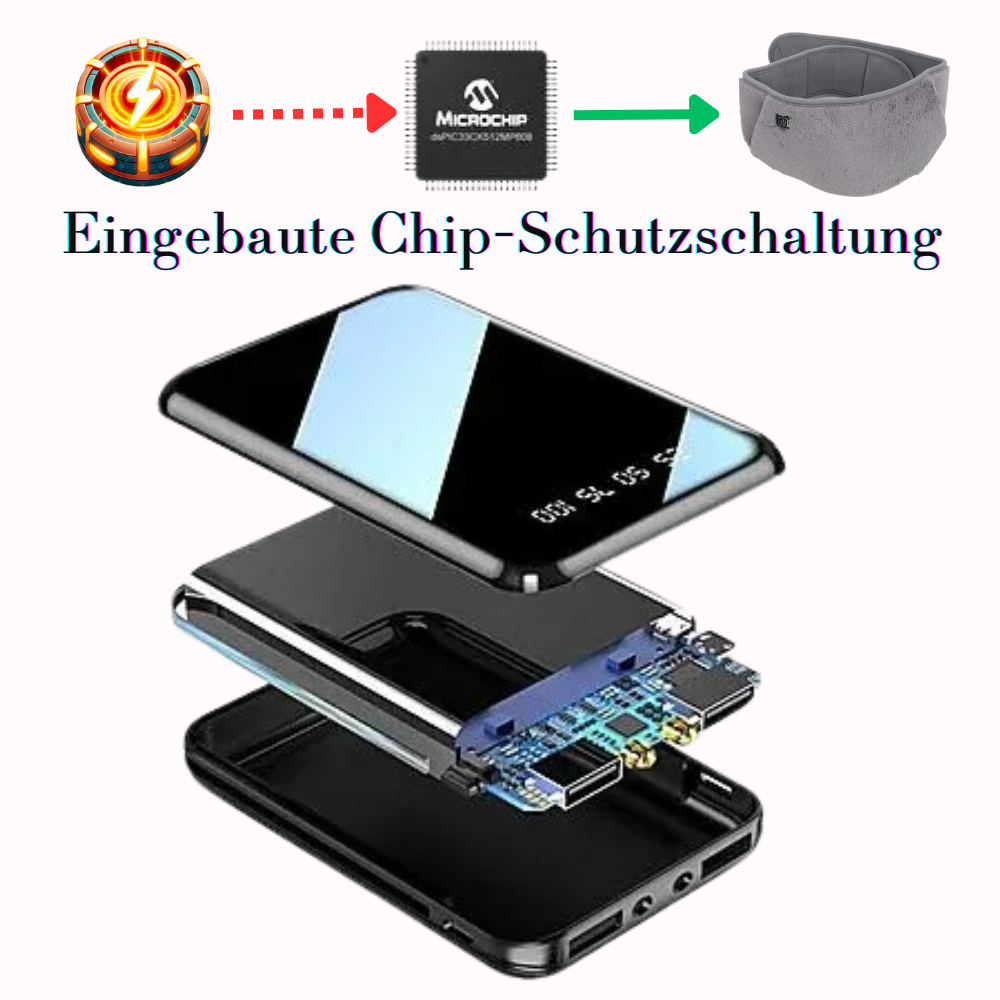 9000000 mAh Kapazität – Power für viele Ladezyklen und lange Wärmesessions.